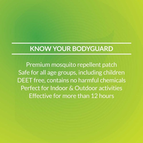 Safe for all age groups, including children, Perfect for indoor and outdoor activities and Easy to use. Using these premium anti-mosquito repellent patches by BodyGuard, you can keep your family protected from the life-threatening diseases caused by the mosquitoes.