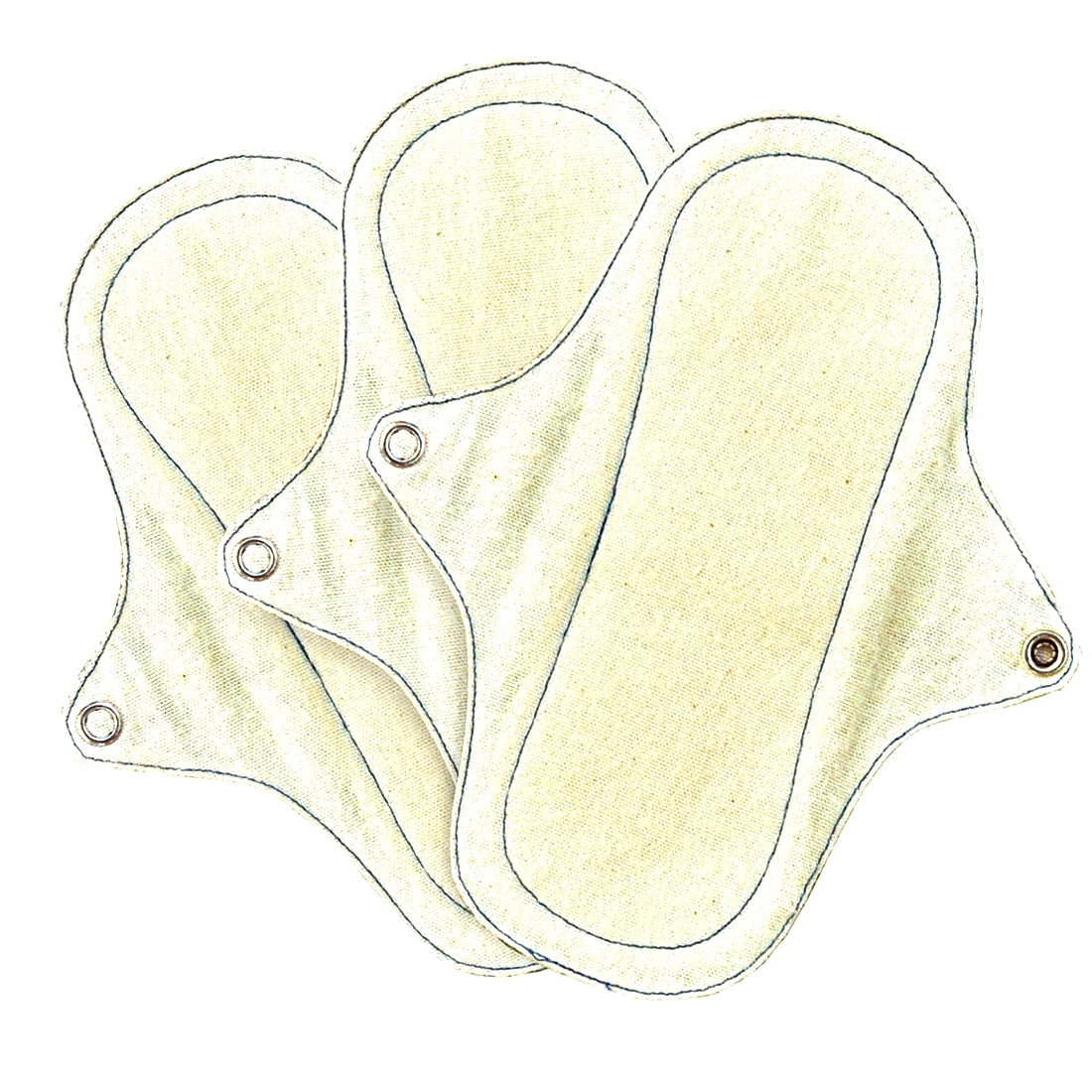 - Indian cotton 100% organic, unbleached - 3 pantyliners per pack - Stitched in one piece - Top layer: cotton flannel in undyed natural cotton colour - Inner layers: 3 layers cotton flannel in undyed natural cotton colour - Back layer: cotton with le