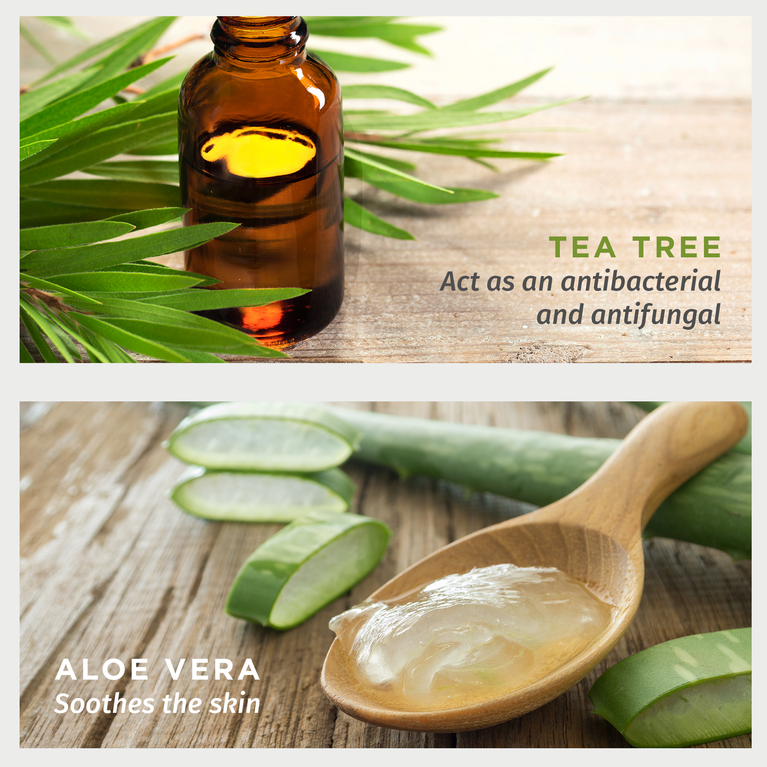 - Tea Tree Oil - Vitamin E Extract - Aloevera Extract