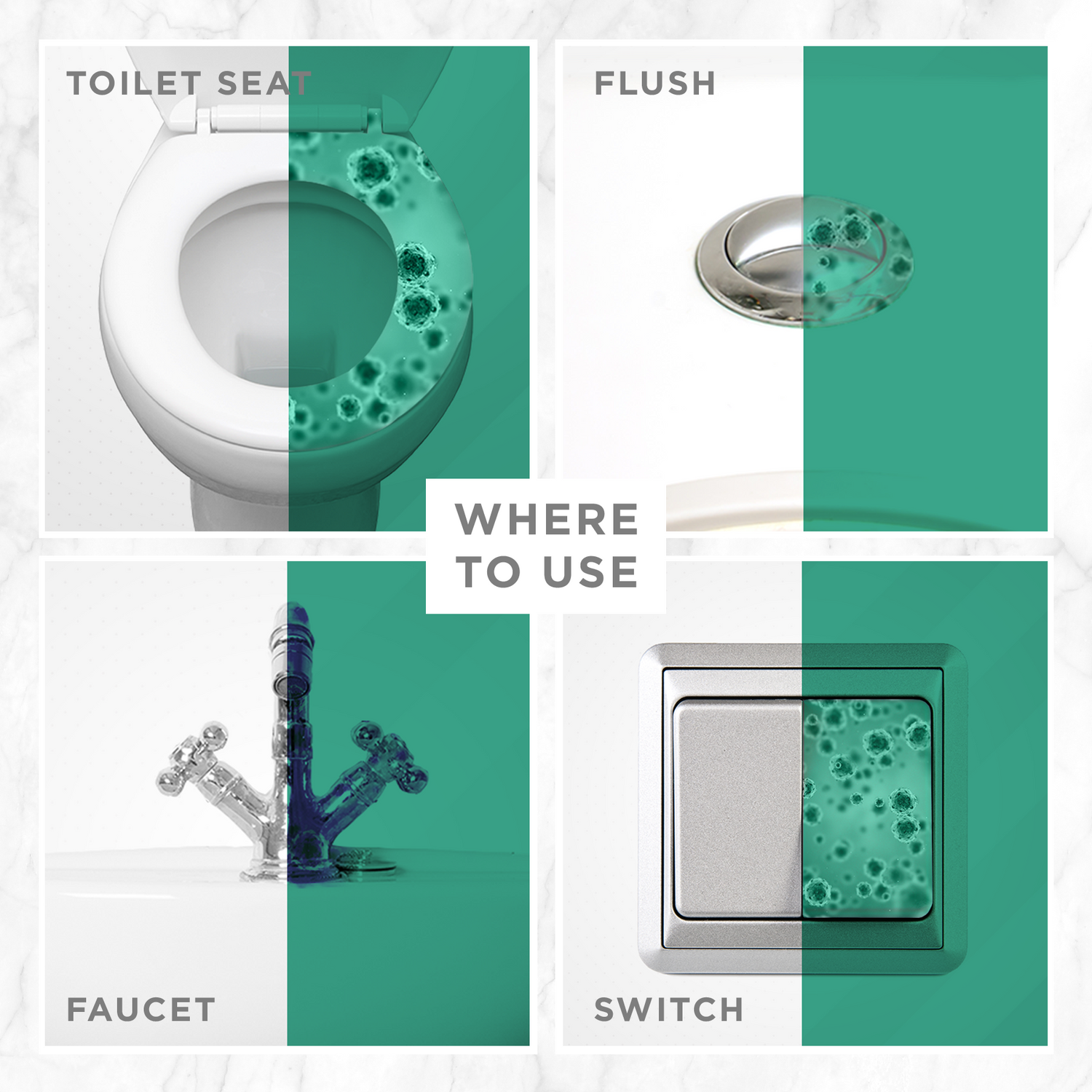 - The spray kills 99.9% of germs that are present on the toilet seat's surface. - All you've got to spray it from a distance of 25 cms and wait for 10 seconds for the spray to work its charm and evaporate.
