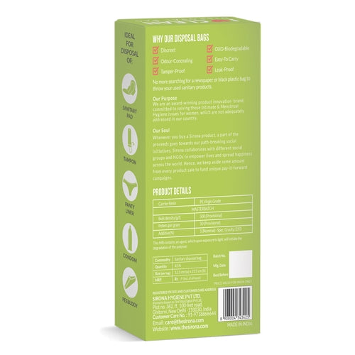 Now bigger and better. Worried about disposing your sanitary and intimate products. Made in India, 'I love clean' by Sirona are cute Oxo biodegradable disposable sanitary bags and are best for hygienic disposal of intimate care products (sanitary pads, tampons, panty liners, baby diapers, condoms, pee buddy) or general products (which need discreet disposal). No more black plastic bags, no more newspaper. Now use I love clean.